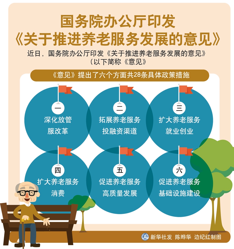 《意见》指出,党中央、国务院高度重视养老服务。按照2019年政府工作报告对养老服务工作的部署,为打通“堵点”,消除“痛点”,破除发展障碍,健全市场机制,持续完善居家为基础、社区为依托、机构为补充、医养相结合的养老服务体系,确保到2022年在保障人人享有基本养老服务的基础上,有效满足老年人多样化、多层次养老服务需求,老年人及其子女获得感、幸福感、安全感显著提高,《意见》提出了六个方面共28条具体政策措施。